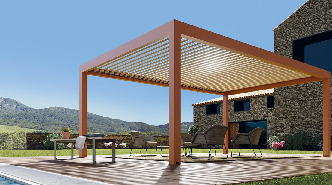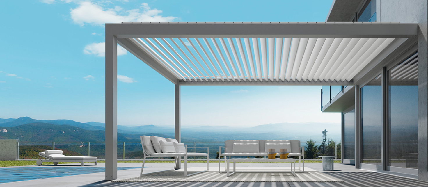 La P-190 es una pérgola bioclimática con un cuidado diseño de líneas